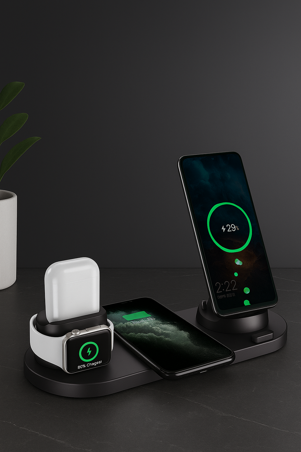Discover the perfect blend of innovation, elegance, and convenience with the 6-in-1 Wireless Charging Dock Station by LuxeNest. Designed for those who value both style and efficiency, this premium charging hub powers up your iPhone, Apple Watch, AirPods, and more — all at once.